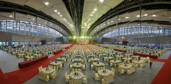 靈活多變的空間組合——展廳可隨意分合,既可連成一體又可獨(dú)立使用;先進(jìn)的活動(dòng)專(zhuān)用設(shè)備和超大型的停車(chē)場(chǎng)等,各種硬件配套設(shè)施均一應(yīng)俱全,能滿(mǎn)足會(huì)議、演出、宴會(huì)、體育賽事等各類(lèi)型活動(dòng)的多功能需求,尤其適合舉辦大規(guī)模宴會(huì)慶典等活動(dòng),曾承接超四千人用餐約400席的盛大宴會(huì),效果顯著氣勢(shì)恢弘。