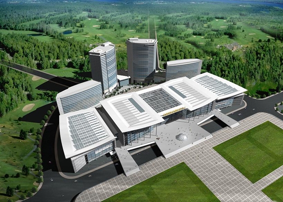 其深遠(yuǎn)而莊重的廣場,是具有強(qiáng)烈包容力造型的建筑群體,建筑與環(huán)境多層次滲透的空間,簡潔、大方、五大尺度的造型。橫向伸展的線條寓意雄鷹展開有力的雙翅一飛沖天。把會展中心大樓沿中軸對稱并橫向伸展,主軸上設(shè)置一系列廣場讓使用功能與視覺效果得到最大的延伸,主入口中庭是整個(gè)建筑群的交通樞紐和視覺焦點(diǎn),高層建筑群通過商業(yè)裙樓連結(jié)并與會展中心相通。